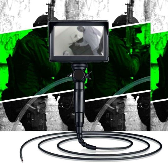 The Tactical IR Black & White Inspection Videoscope is a compact, field-deployable Remote Visual Inspection (RVI) system designed for police, security, law-enforcement, and military inspection tasks in complete darkness or low-visibility environments. The system integrates an eye-safe infrared illumination source, IR-sensitive CMOS imaging, articulated flexible probe, integrated display unit, and an optional microphone located at the probe distal end for synchronized audio capture.